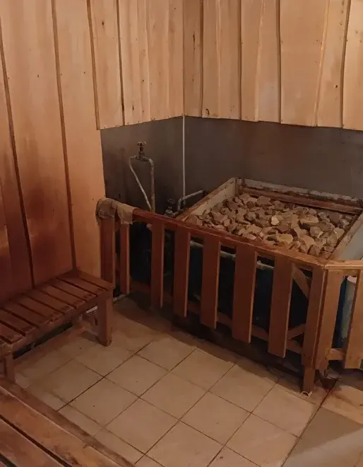 Здесь вас ждет баня с мягким паром, который создается парогенератором и подается прямо в парильное помещение по специальной трубе.